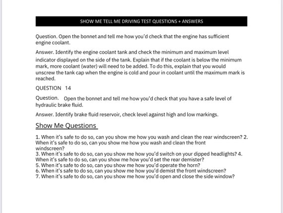 Show Me Tell Me Driving Test Questions And Answers Etsy